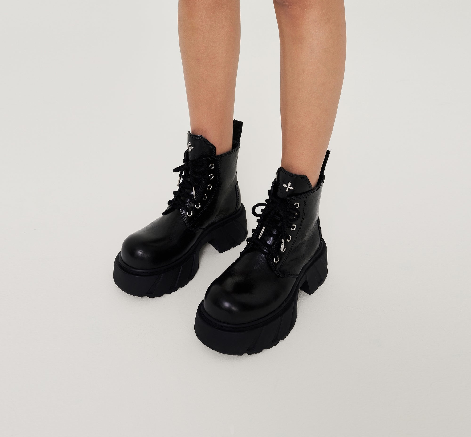 Пошив корпуса ботинка и подошвы более прочный, подходит для использования на открытом воздухе по любой местности и в городских условиях ежедневно. Интегрированная резиновая подошва на высоком каблуке (5,5-6 см) имеет обтекаемые канавки по бокам подошвы, вдохновленные водной рябью. Недавно разработанная противоскользящая канавка W на подошве вдохновлена венами горы. Срезанный угол язычка украшен значком COMPASS. Серия обуви SMFK поставляется из кожаных материалов собственного производства, обеспечивая высококачественные материалы в долгосрочной перспективе и стабильностью: по толщине / текстуре / плотности / цвету, отражая грубый и дикий дух SMFK. Внешняя кожа изготовлена из вощеной коровьей кожи с крупной текстурой, разработанной и произведенной SMFK в 2025 году. Она средней или высокой толщины, окрашена в черный цвет и покрыта воском для защиты поверхности. После трения образует хлопчатобумажную текстуру, а затем полируется, чтобы подчеркнуть блеск минерала. Грубый и грубый процесс выделки кожи отражает уровень и качество кожи. Корпус обуви естественным образом приобретет маслянистый блеск и естественную текстуру после длительной носки. Для внутренней подкладки используется телячья кожа с нежной матовой восковой текстурой.