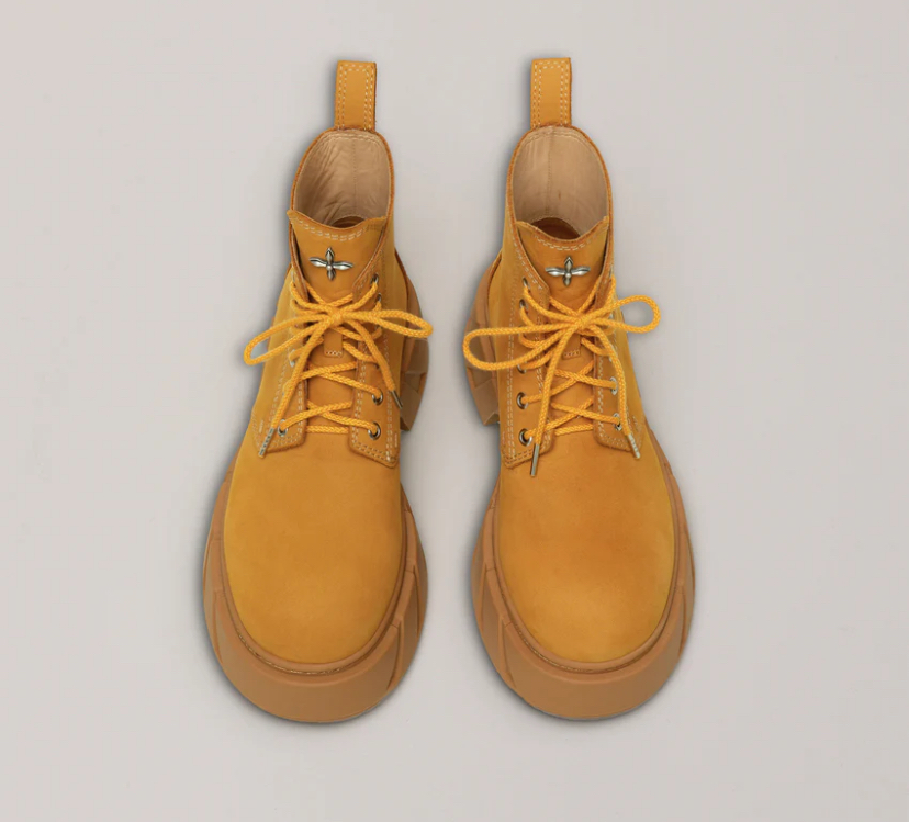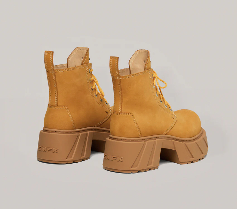 Дизайн: Mirage – это серия обуви и ботинок, разработанная SMFK в 2025 году. Культовый стиль обуви SMFK, кожаные ботинки для езды, использует новую структуру срезанного угла дерби с резиновой комбинированной подошвой.