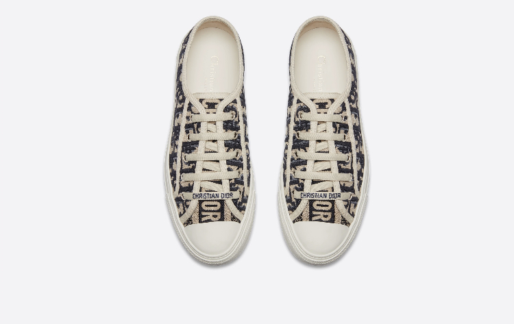 Сникеры Walk’n’Dior из хлопка синего цвета отличает вышитый мотив Dior Oblique. Классическая модель в непринужденном стиле украшена фирменными надписями на язычке, резиновой подошве и шнурках.