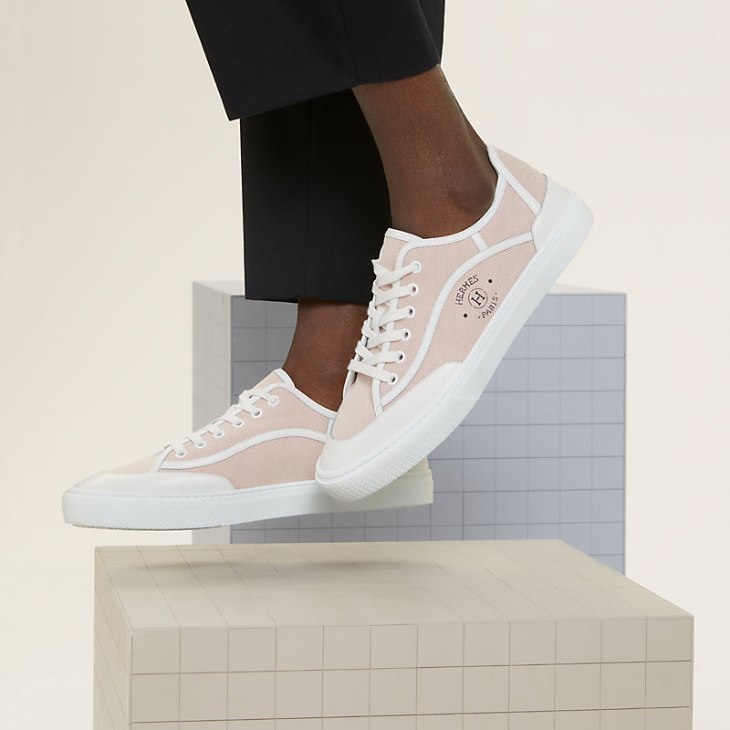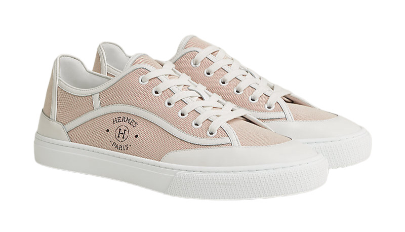 Кроссовки из канвы H и телячьей кожи с трафаретной надписью «Hermès Paris».