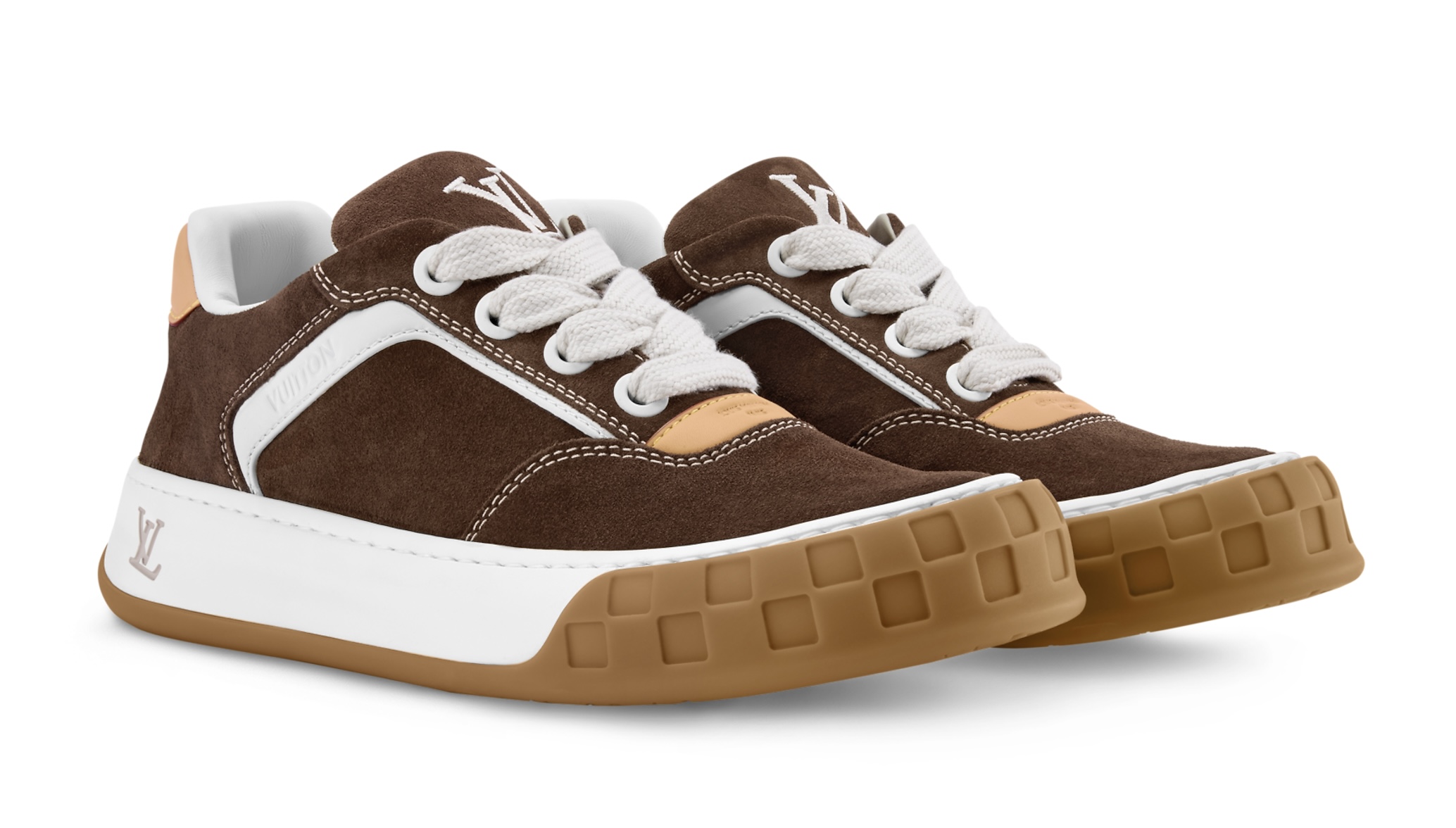 Кроссовки LV Tilted — это низкие кеды, ставшие неотъемлемой частью мужского гардероба, вдохновленного винтажными моделями 2000-х годов. Свое название они получили благодаря слегка наклоненной вышитой надписи LV Initials на язычке. Ключевые детали этой модели — широкие текстильные шнурки, придающие смелый вид, и массивная резиновая подошва с мыском в стиле Damier и цветочными деталями Monogram на подошве. Эта версия выполнена из замшевой телячьей кожи с фирменной отделкой из натуральной кожи Louis Vuitton, напоминающей о мастерстве Дома.