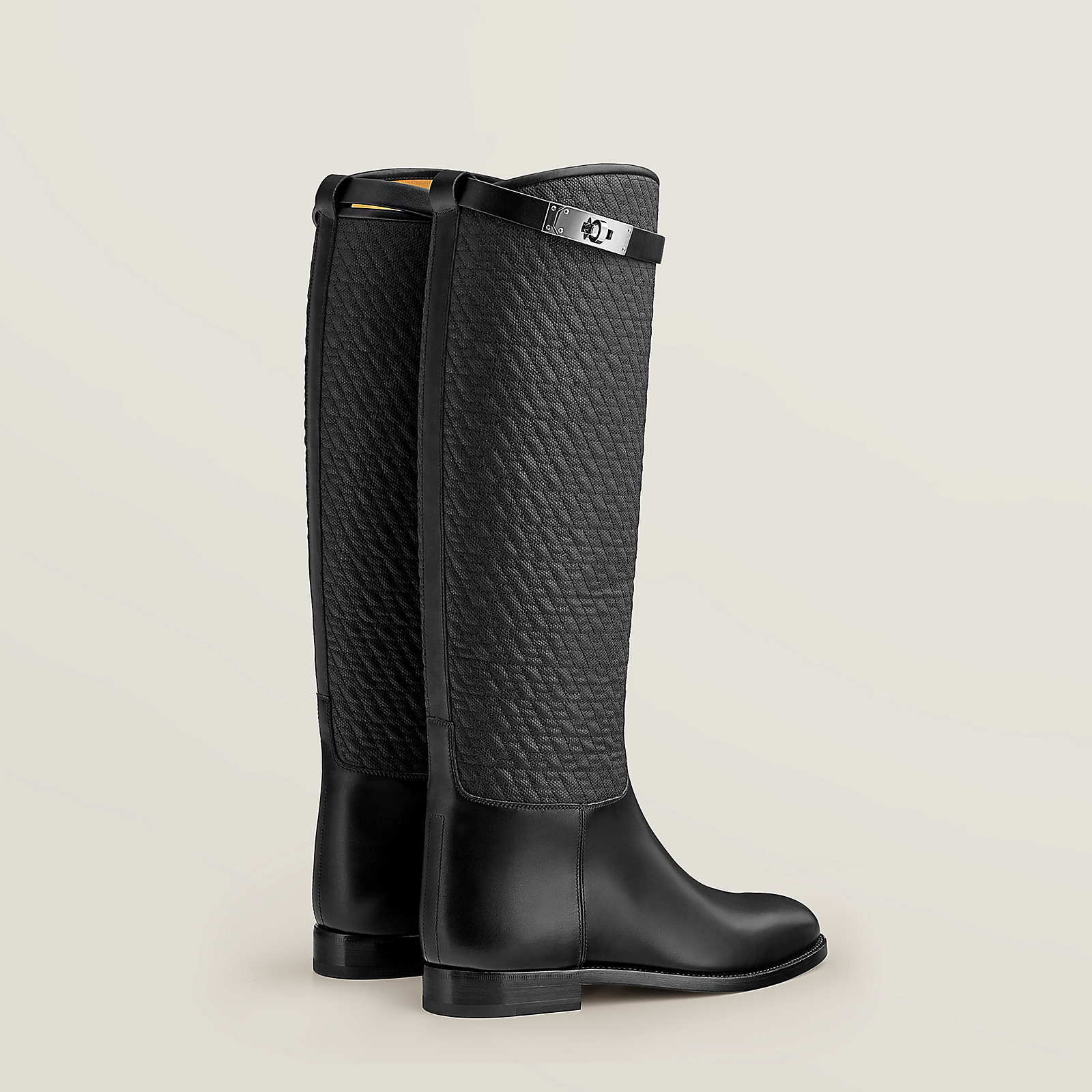 Ботинки из стеганого холста и телячьей кожи с мотивом «H en Biais».