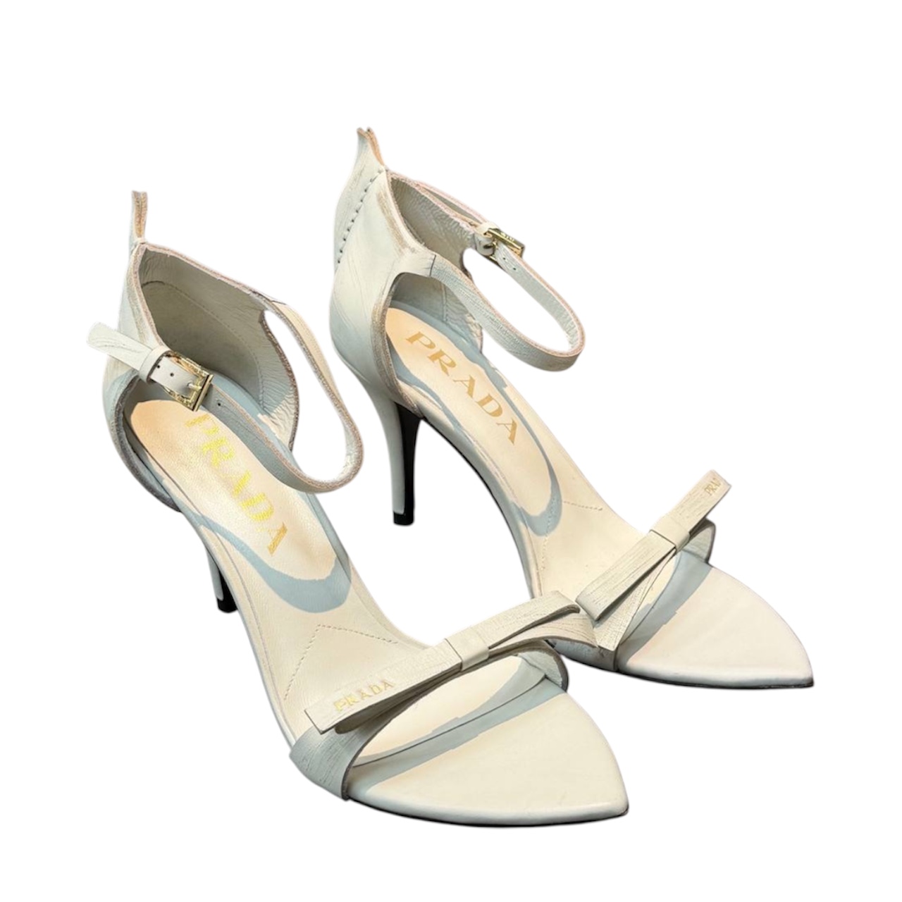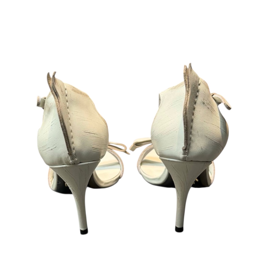 Эти босоножки с острым носком отличаются открытыми швами и необработанными краями, что придает им деконструированный вид. Ремешок на мыске украшен бантиком с логотипом.