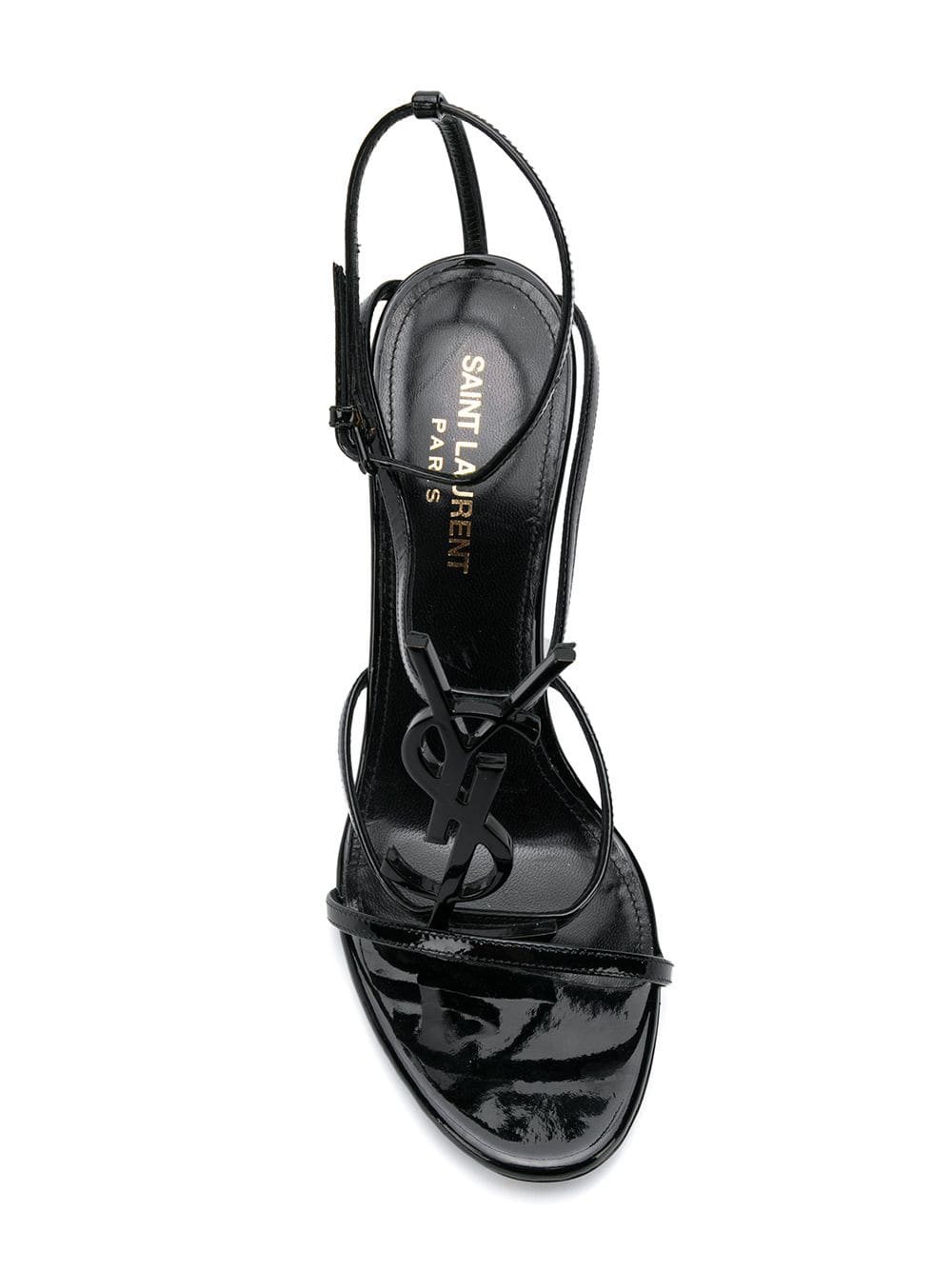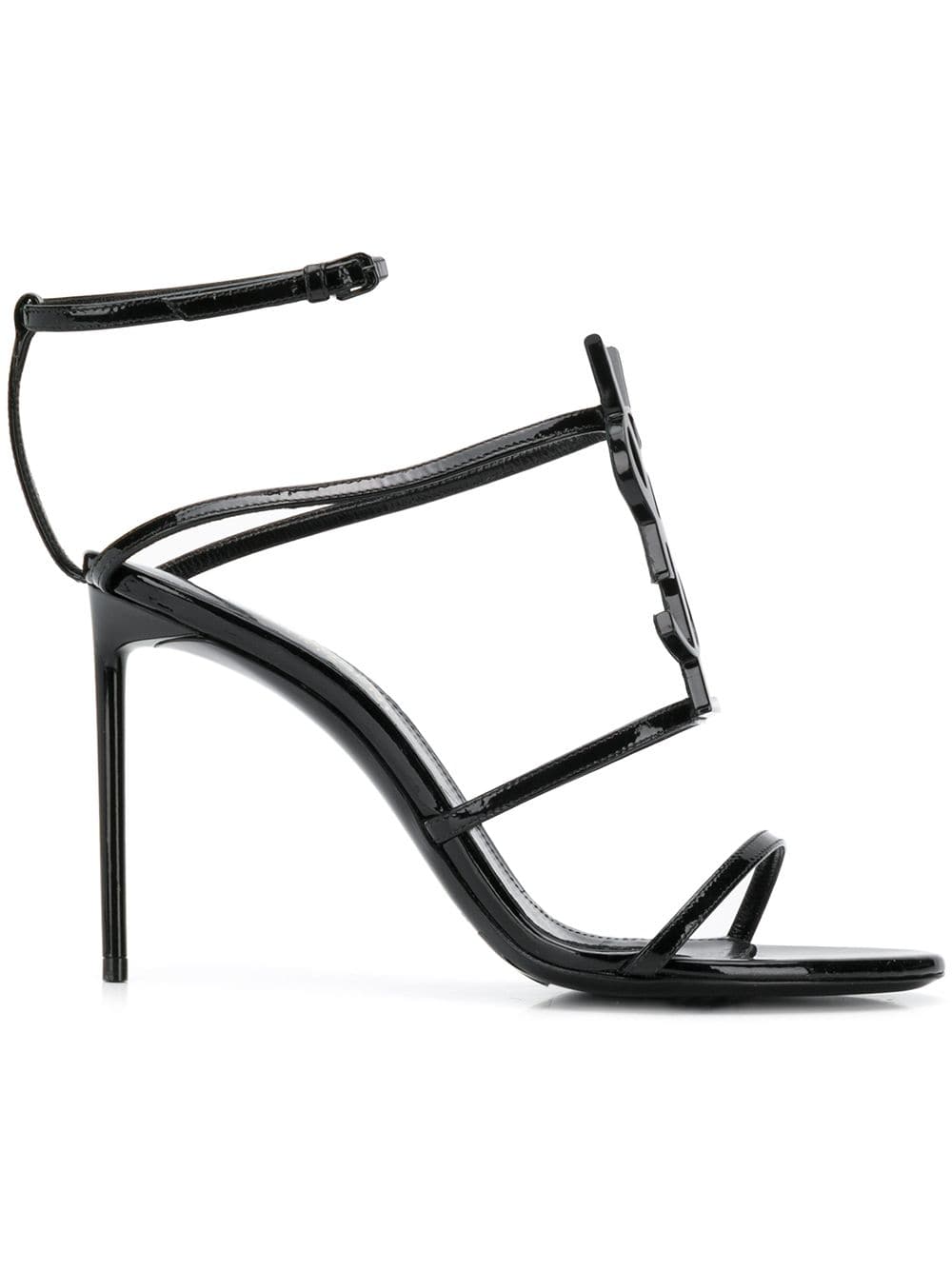 Босоножки ‘Cassandra 95’ с логотипом от Saint Laurent (Сен Лоран). Ремешок на щиколотке и пряжка сбоку, пряжка с логотипом спереди и высокая шпилька.