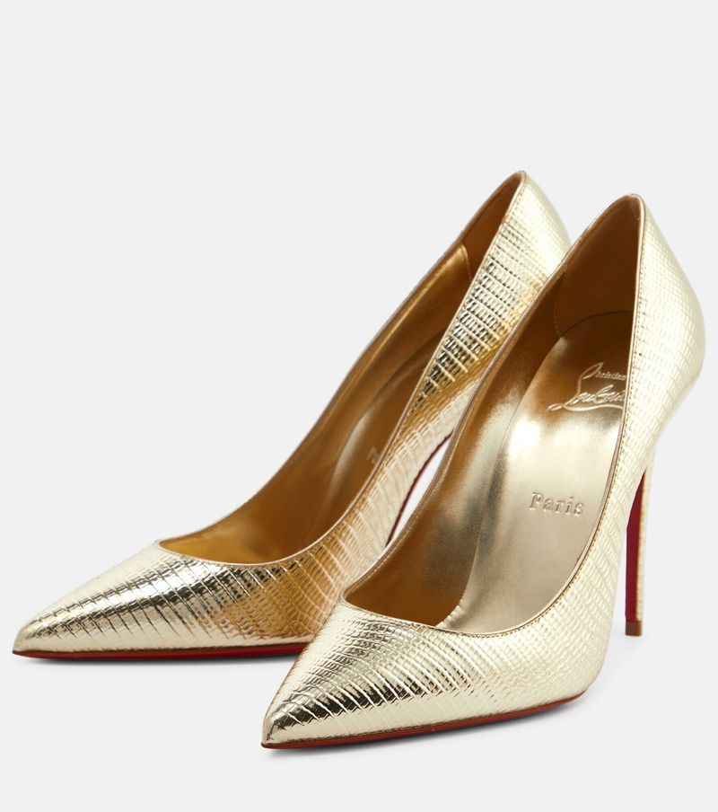 Одно из самых знаковых творений Кристиана Лубутена, туфли Kate предназначены для усиления чувственной свода стопы. Металлический верх с эффектом змеи изготовлен из кожи и имеет форму остроконечного носка, сбалансированный на каблуке-шпильки.