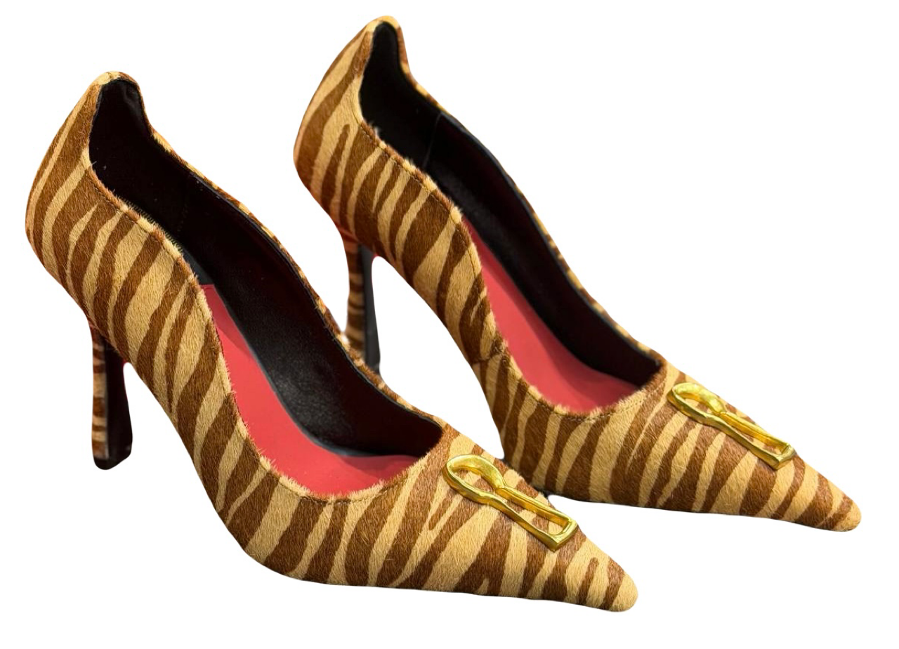 Эти туфли на каблуке из телячьей кожи с зебровым принтом вдохновлены одним из ключевых принтов сезона.
