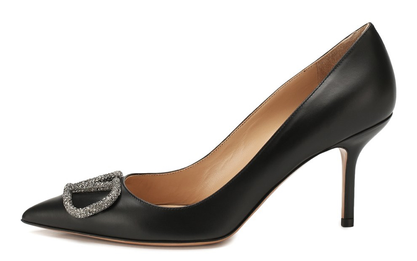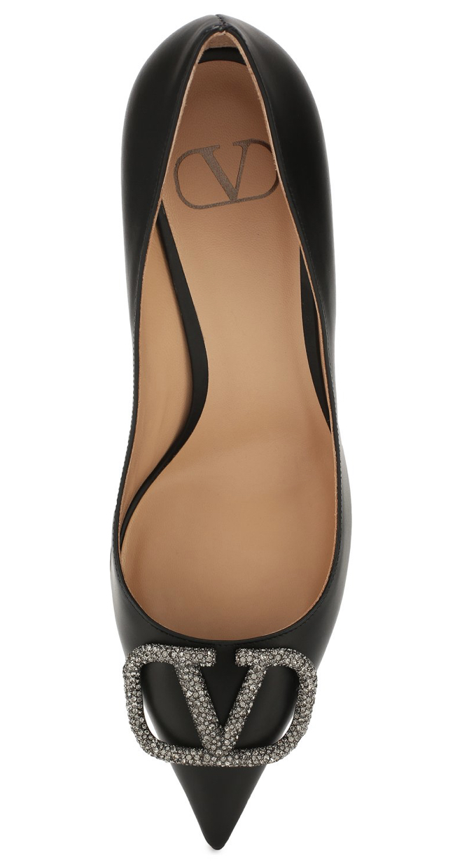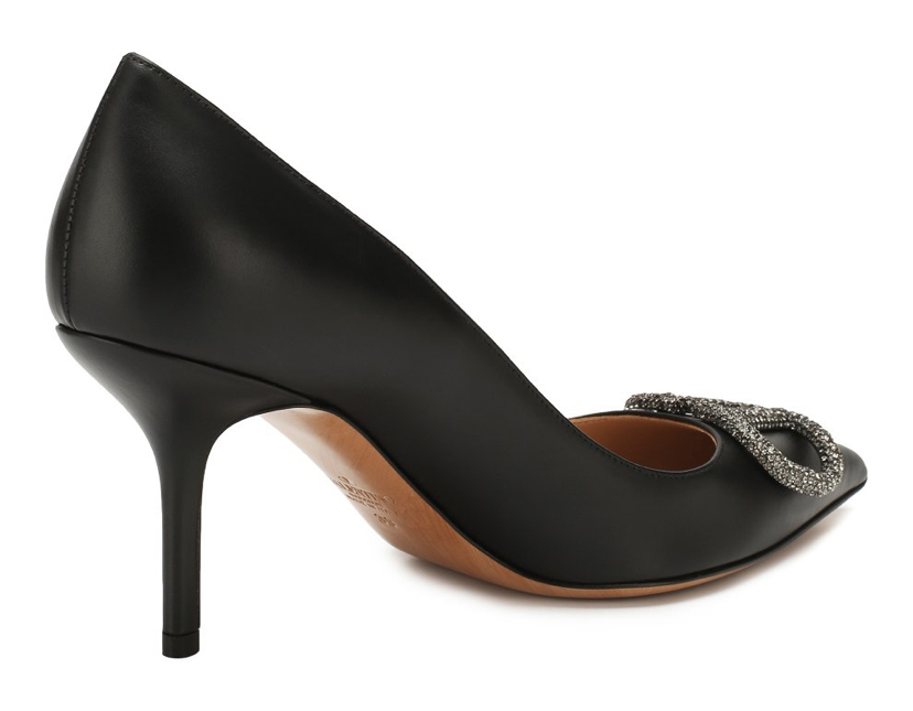 Пьерпаоло Пиччоли дал новую жизнь эмблеме VLogo, которую Валентино Гаравани использовал в 1970-х. Это иллюстрируют и черные туфли-лодочки из весенне-летней коллекции 2020 года. Символика марки сыграла в них ключевую роль. Характерную форму задали крупной пряжке и украсили ее мерцающими кристаллами. Их эффектно оттеняет гладкая матовая кожа.
