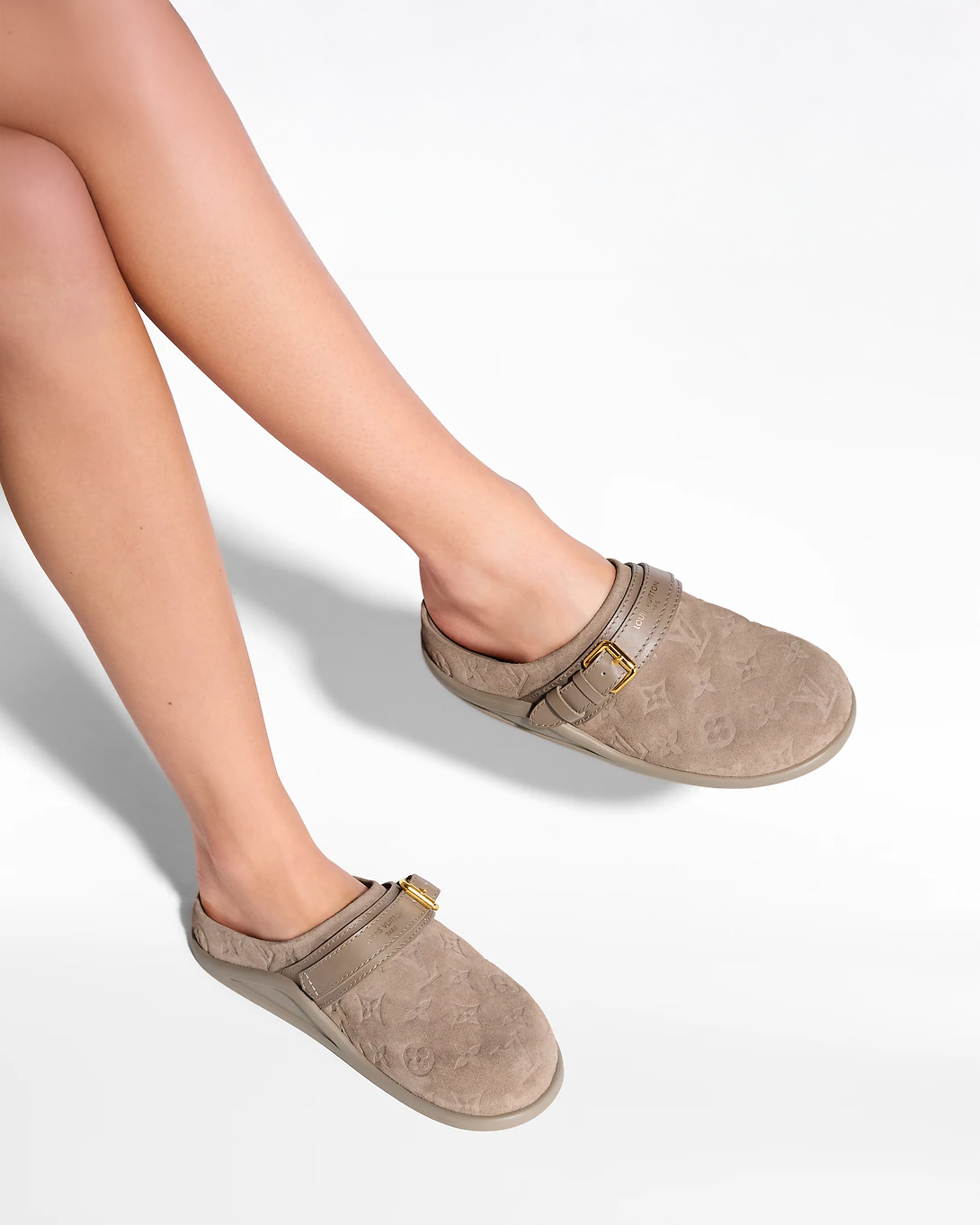 Комфортные мюли IV To Go — это модная модель для походов и путешествий. Изготовлены из замши из телячьей кожи с тисненым узором Monogram.