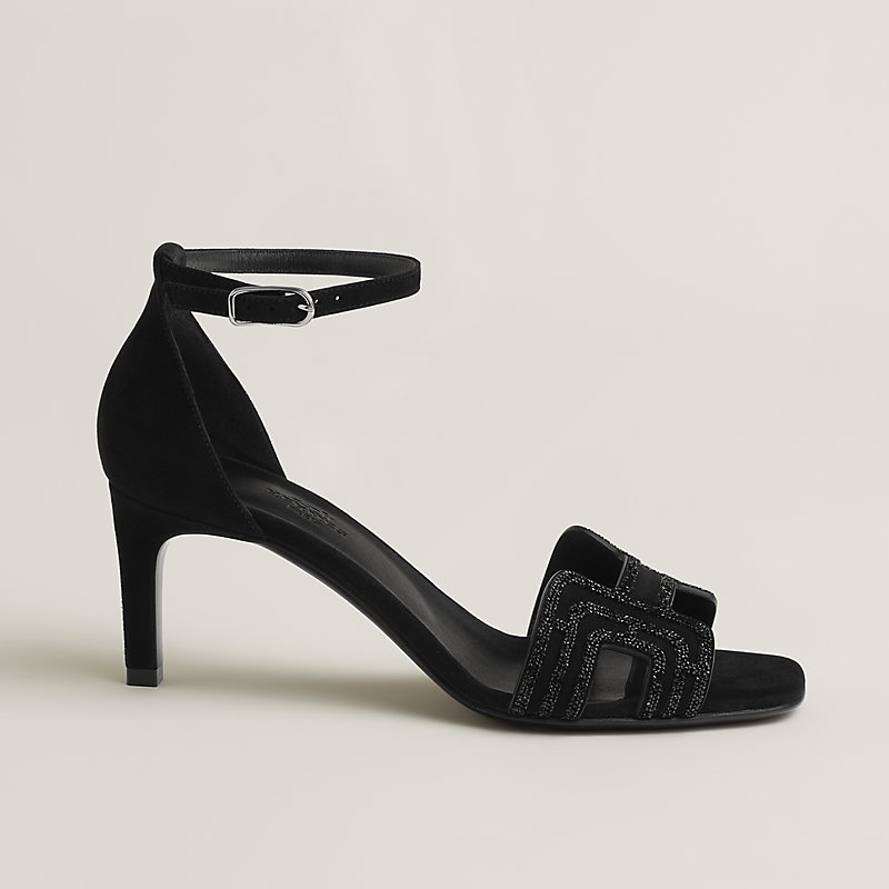 Сандали на высоком каблуке из замши из козьей кожи с декором из страз “Arcane”.