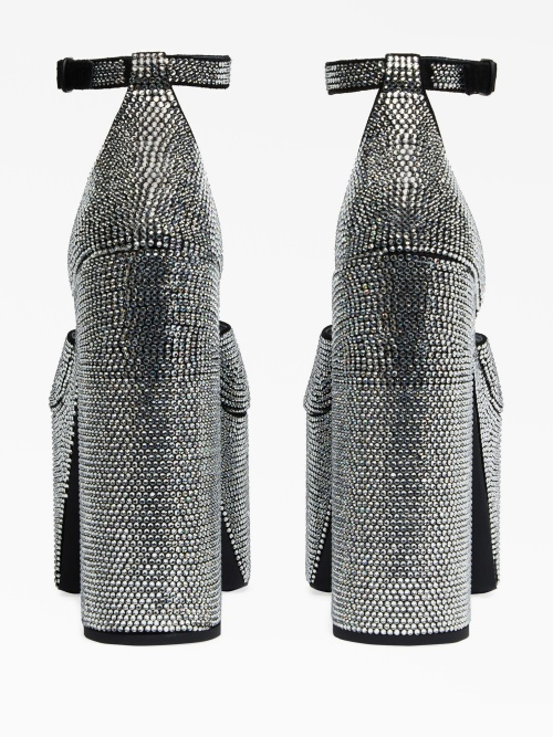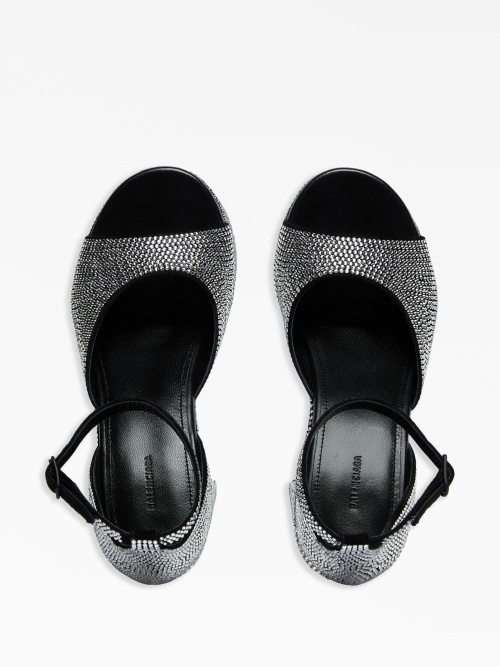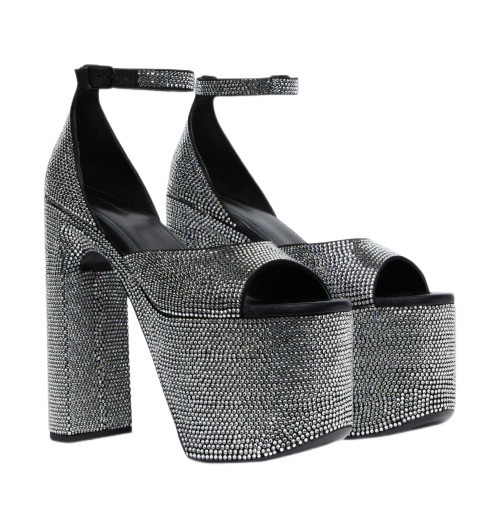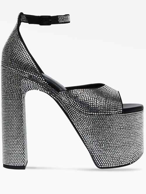 Кожа, ремешок на щиколотке с пряжкой, открытый носок, кожаная стелька с логотипом, подошва на платформе и высокий блочный каблук.