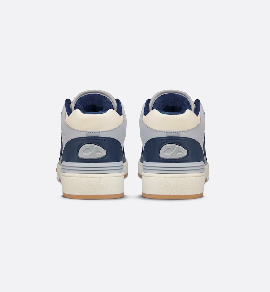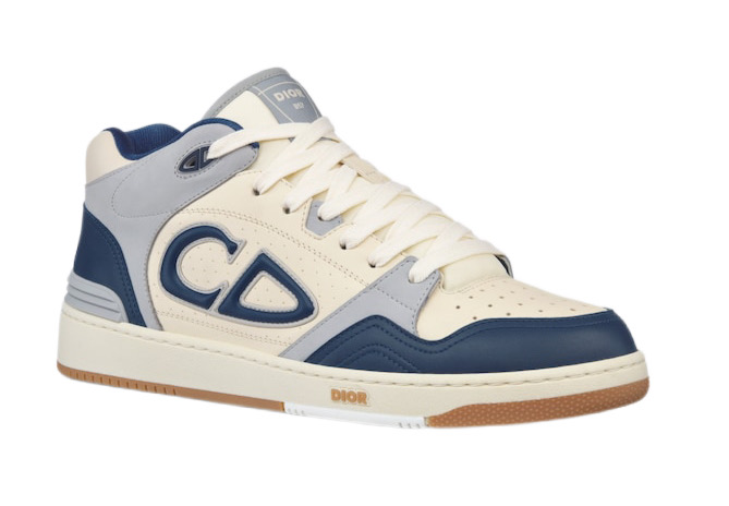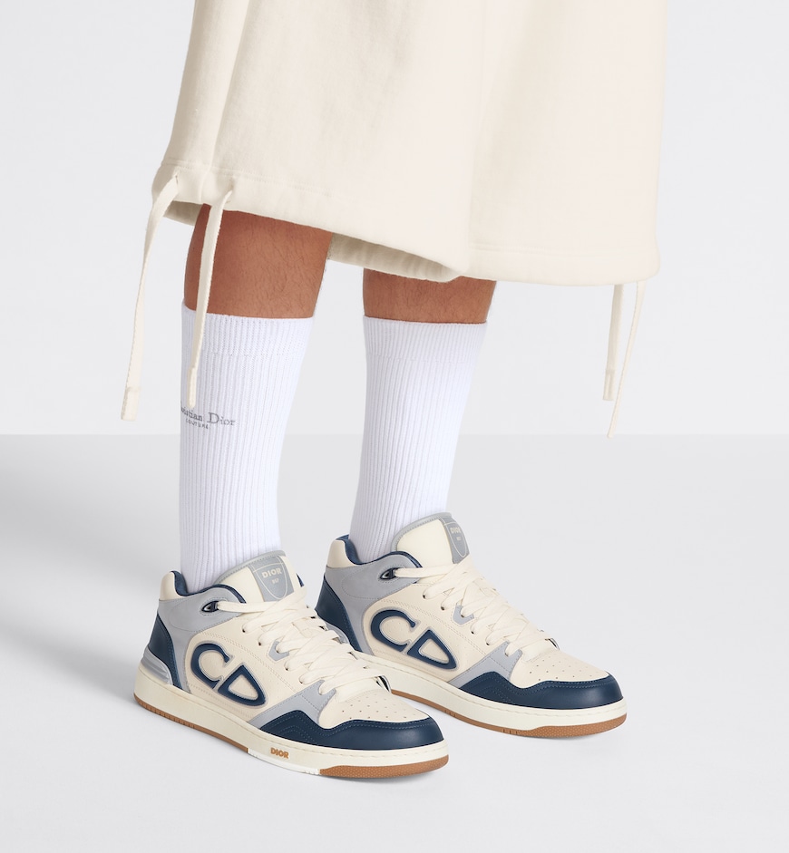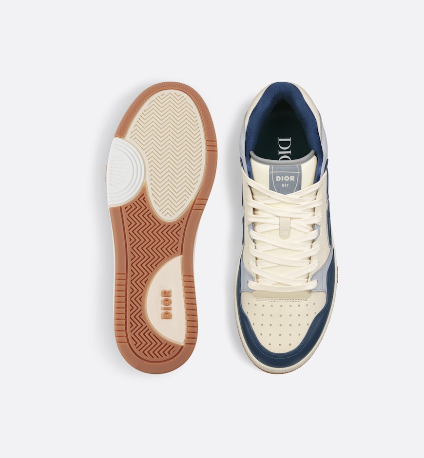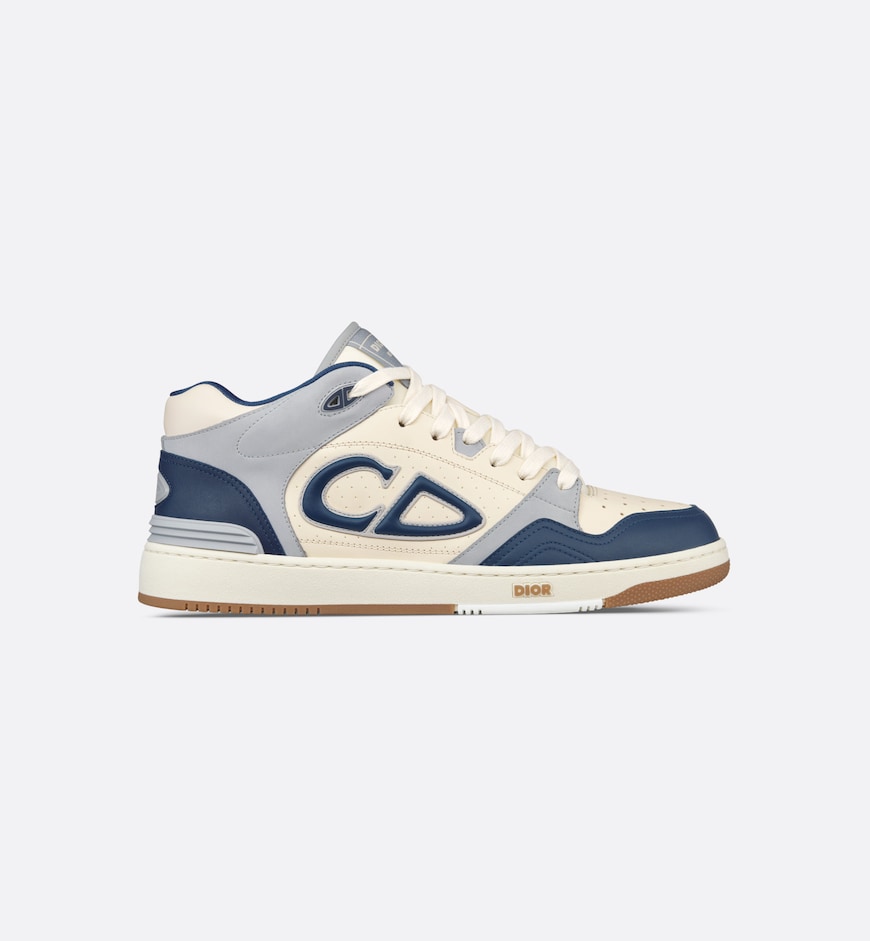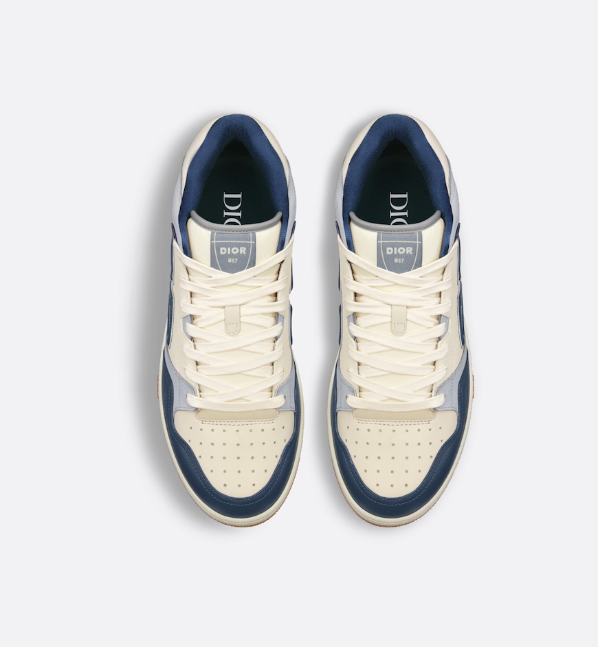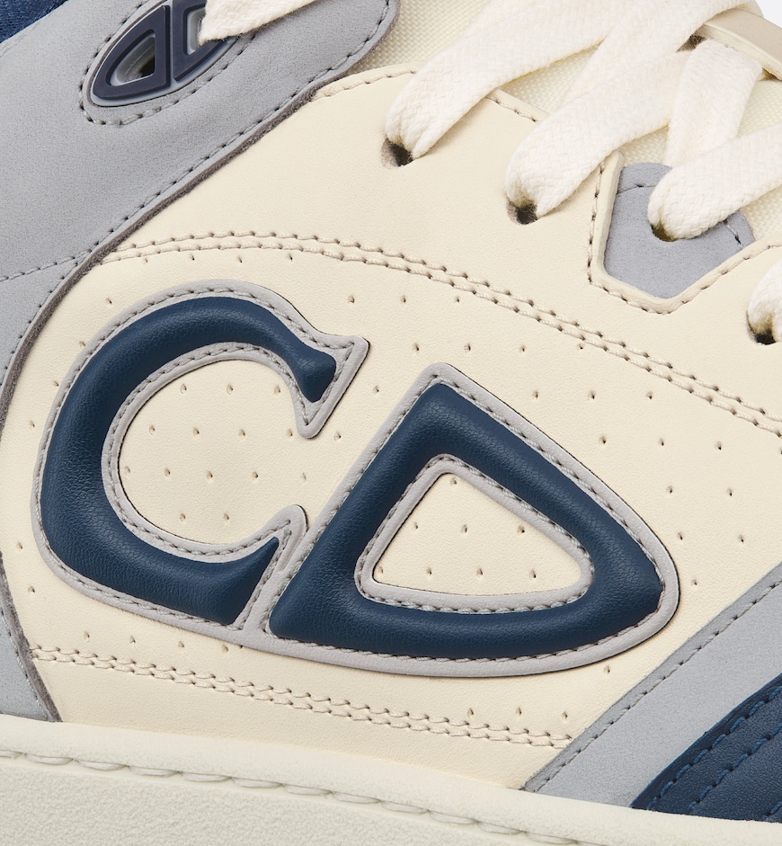 Сникеры B57 средней высоты из весенней коллекции2024— одна из ключевых моделей модного дома в стиле баскетбольных кроссовок. Изделие из гладкой телячьей кожи темно-синего и кремового цветов и серой замши украшено кожаным символом CD сбоку. Сникеры дополнены фирменными деталями на язычке, подошве и заднике. Перфорация, строчка и резиновая вставка подчеркивают спортивный характер модели. Сникеры на двухцветной резиновой подошве станут изысканным дополнением к любимым образам.