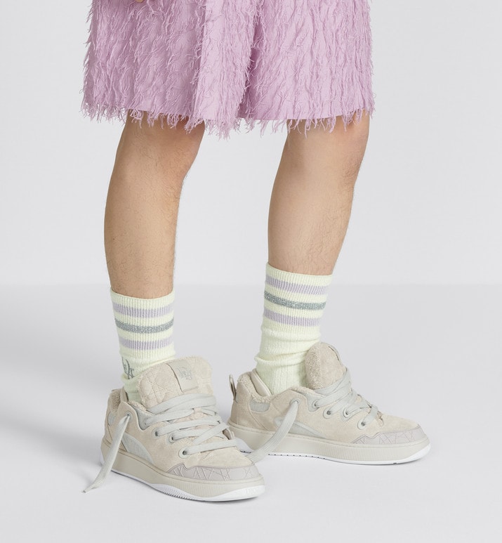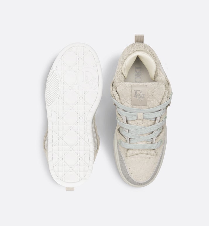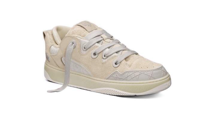Сникеры B9S— ключевое изделие эксклюзивной коллекции Dior BY ERL— выполнены в стиле скейтерской экипировки с сохранением эстетики от-кутюр модного дома. Модель из кремовой замши со вставками из жаккарда Dior Oblique белого и кремового цветов отличается объемной формой и техническими элементами, в том числе носком из технической ткани, обеспечивающим оптимальный комфорт. Изделие украшено символом Dior by ERL сбоку, а также на язычке с мягкой подкладкой и мотивом Cannage. Спереди имеется резиновая вставка Cannage. Скейтерские сникеры на двухцветной резиновой подошве, украшенной мотивом Dior Oblique с эффектом деграде, станут завершающим штрихом в любом повседневном образе. Изделие можно сочетать с другими моделями Dior BY ERL.