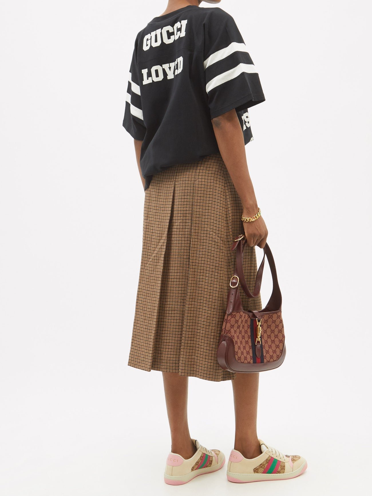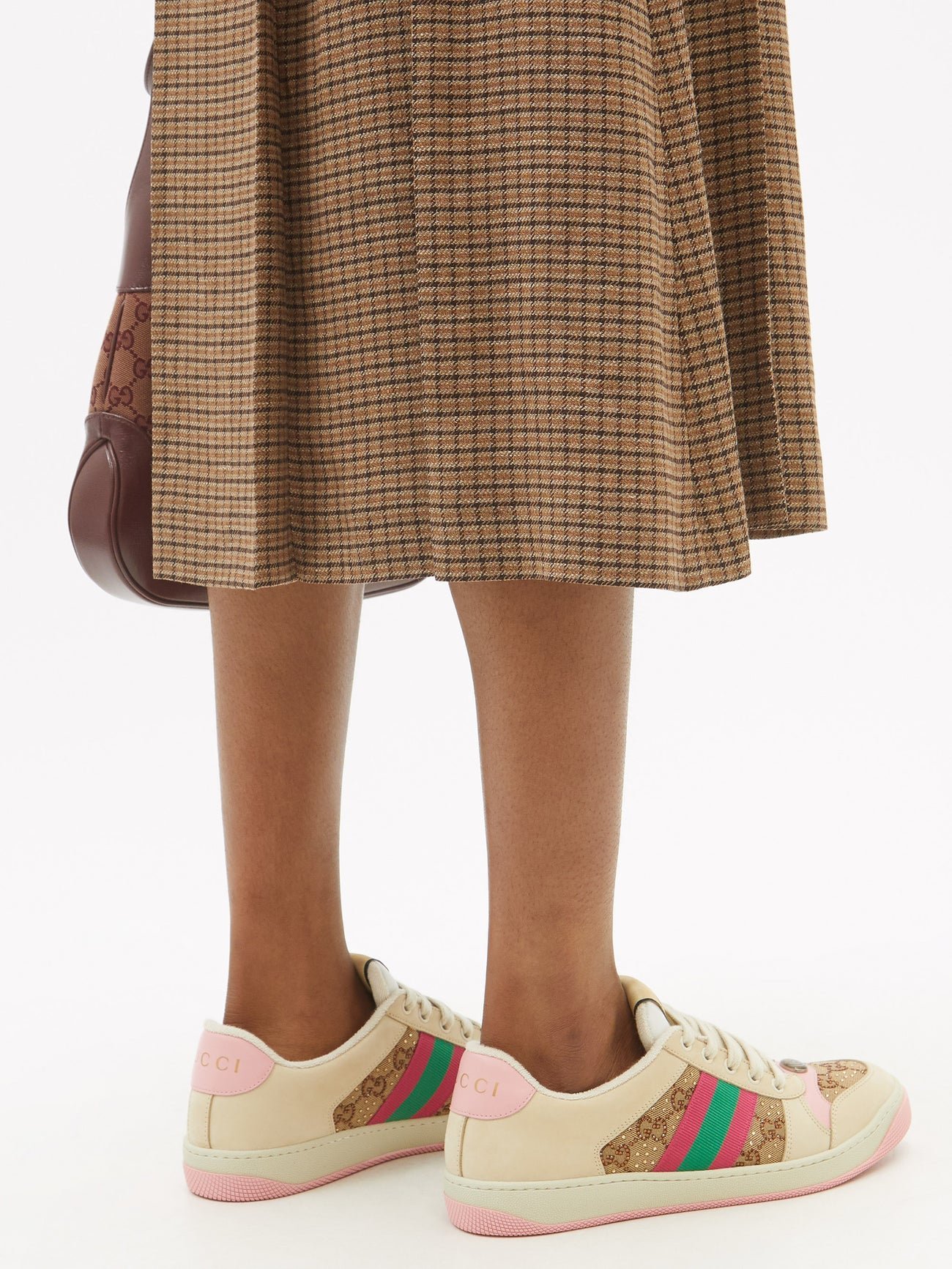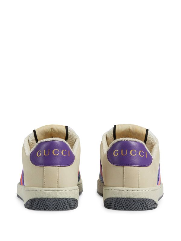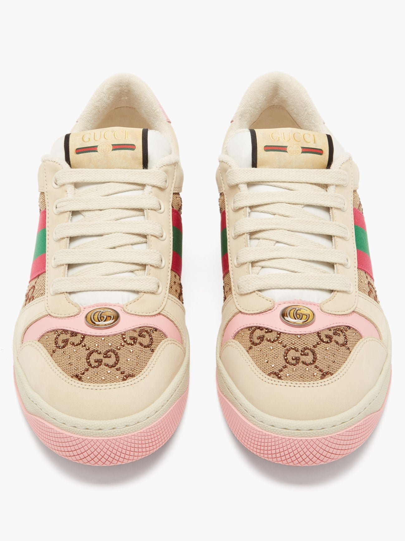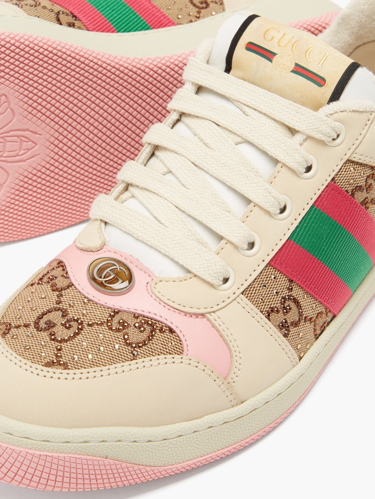 Представленный в итерации ткани, вдохновленной архивами, Screener разработан из сочетания кожи цвета слоновой кости и синего и серебристого ламе GG.Созданные под влиянием классических кроссовок 70-х, кроссовки, названные в честь защитного спортивного приема, украшены полосой Web сбоку и винтажным логотипом Gucci.