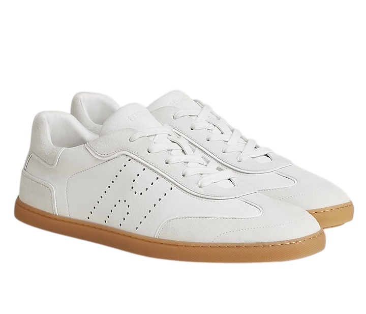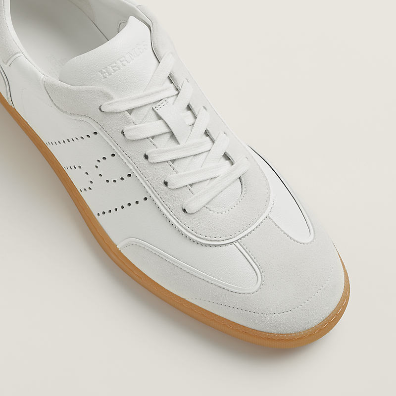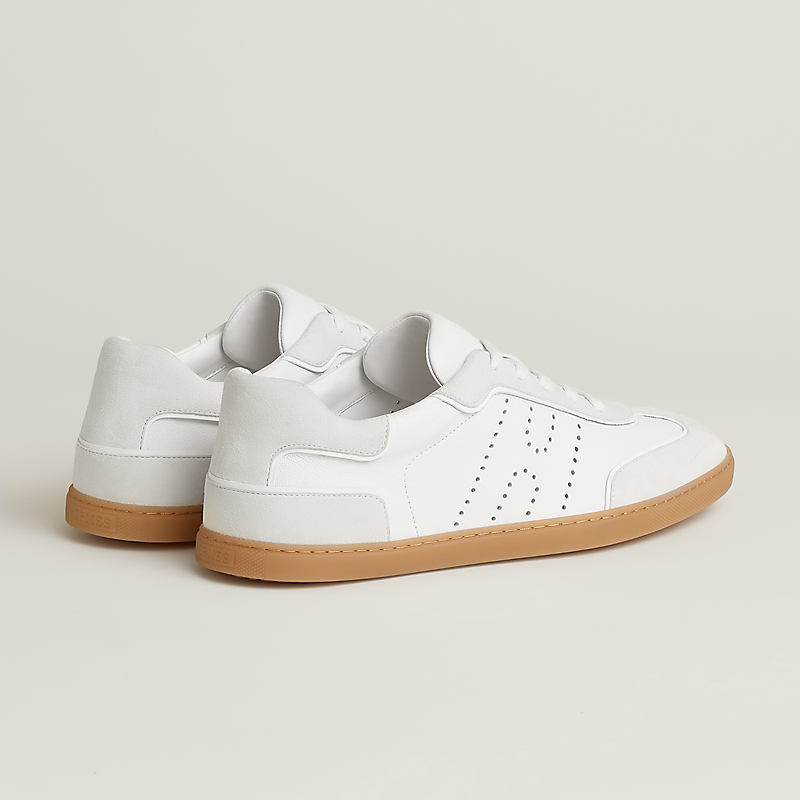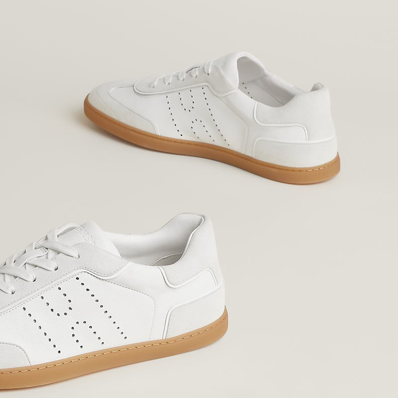 Кроссовки из спортивной козьей кожи, замши из козьей кожи и телячьей кожи с перфорированной отделкой “Hen Biais”.