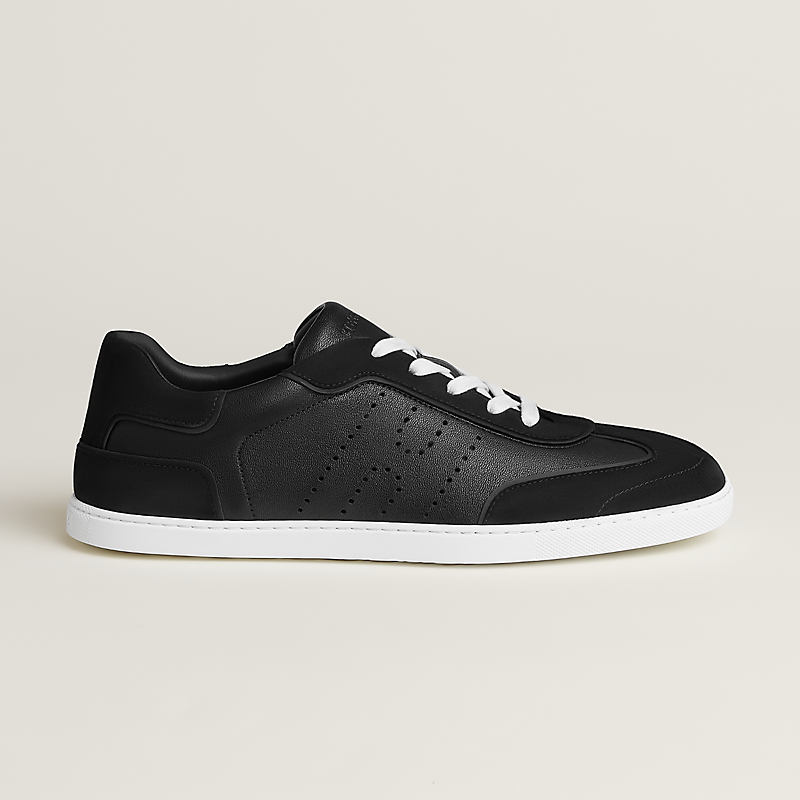Кроссовки из спортивной козьей кожи, замши из козьей кожи и телячьей кожи с перфорированной отделкой “Hen Biais”.