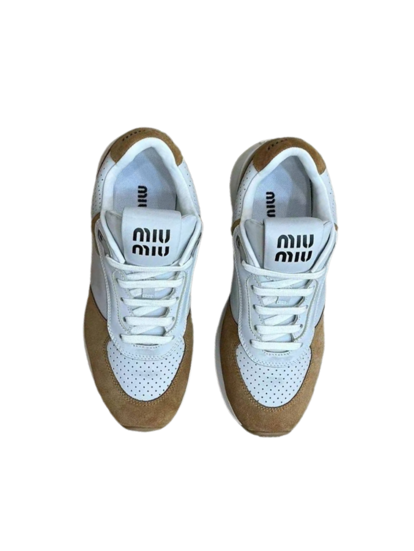 Повседневный характер классических кроссовок сочетается с мягкостью овчины. Знаменитый логотип Miu Miu контрастного цвета на язычке украшает этот особый стиль.