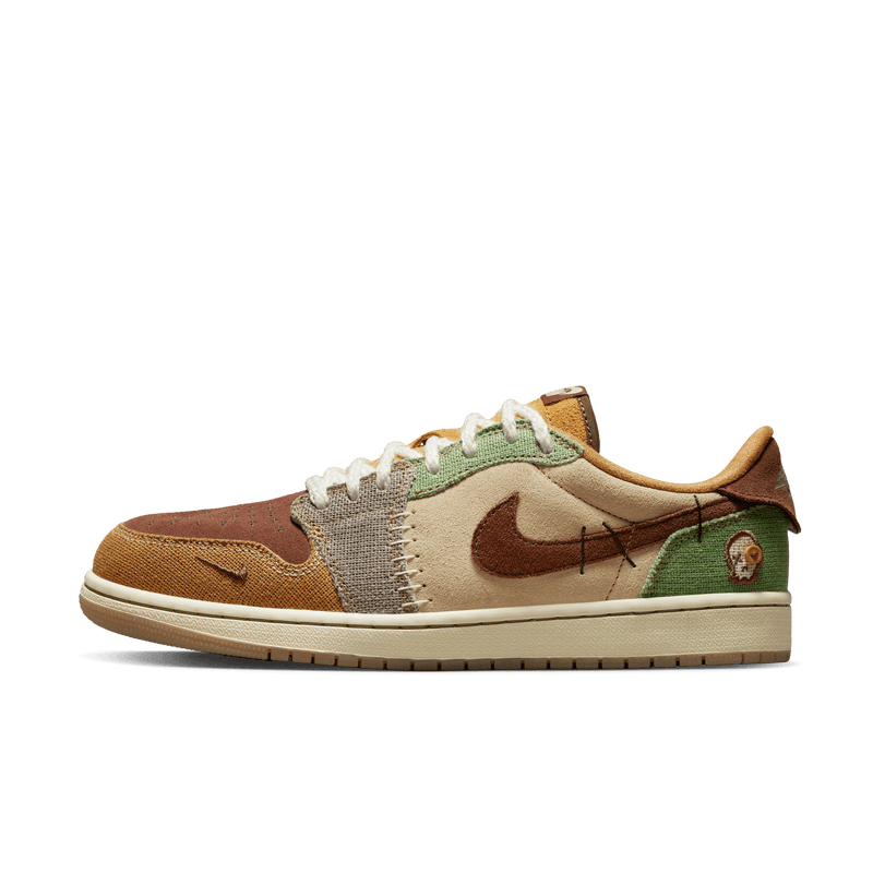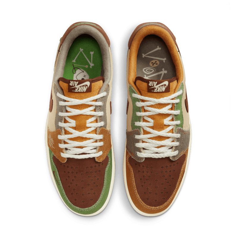 Верх пары выполнен из микса конопляных материалов, канваса и замши и дополняется логотипом-вуду в виде черепа и стежками на «свуше» и других деталях. Также интересно смотрится перевернутый лейбл на язычке.