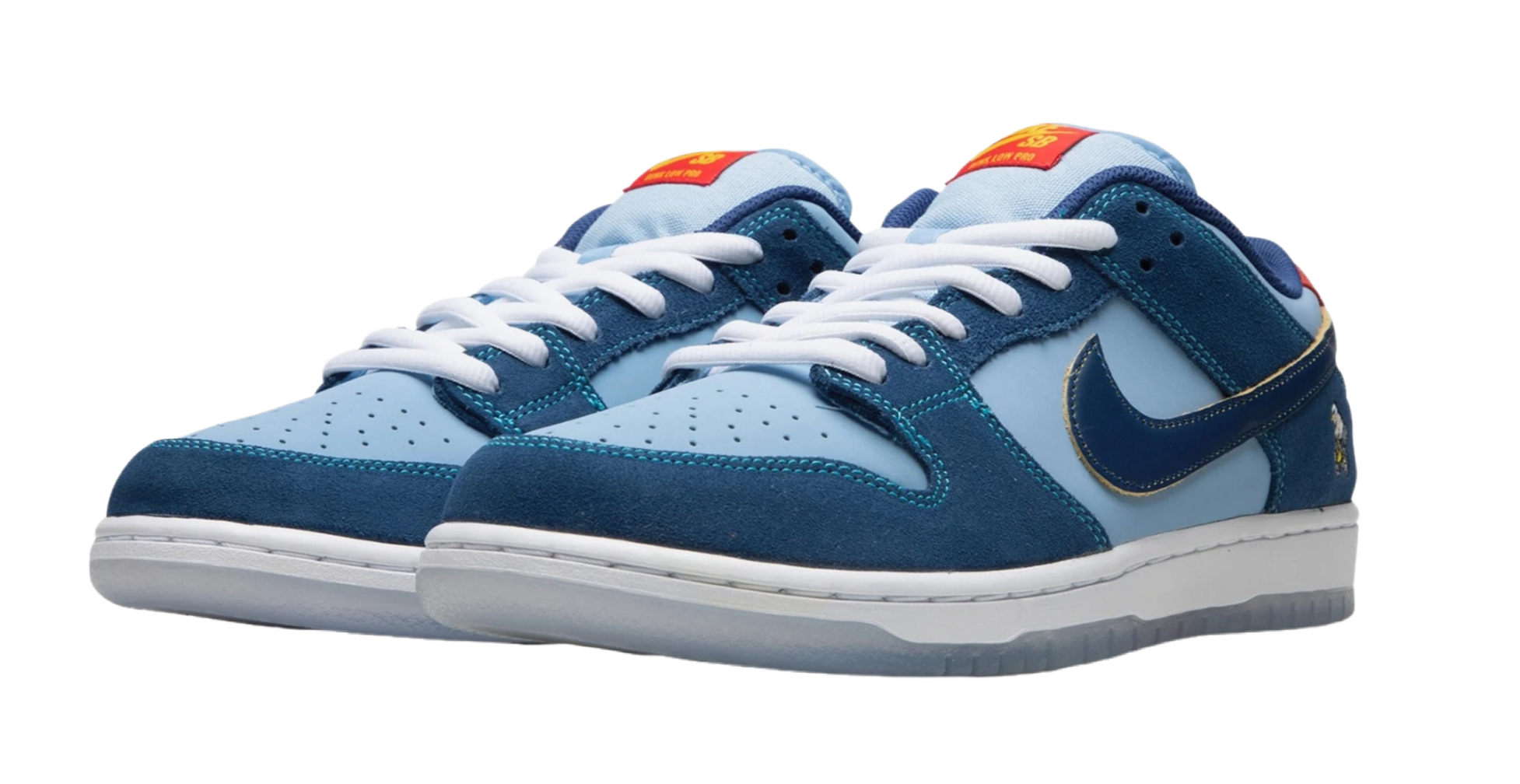 Джон Рэттрей — шотландский скейтбордист и активный сторонник защиты душевного и психического здоровья, создавший «Why So Sad?» чтобы помочь начать разговор о психологических проблемах. Дабы помочь этому благому делу, Nike объединилась с шотландским талантом для выпуска специальной версии SB Dunk Low, которая станет значительной частью в сборе средств в этом году. Эта пара Why So Sad? x Nike SB Dunk Low имеет светло-голубую кожаную основу с аналогичного цвета сетчатыми язычками и темно-синими отрывными накладками, под которыми скрывается желтая кожа. Фирменные вышитые изображения птицы на скейтборде и велосипеде, а также надписи «Why So Sad?» на внутренней стороне язычка и символ «?» на эглетах и задниках завершают дизайн.