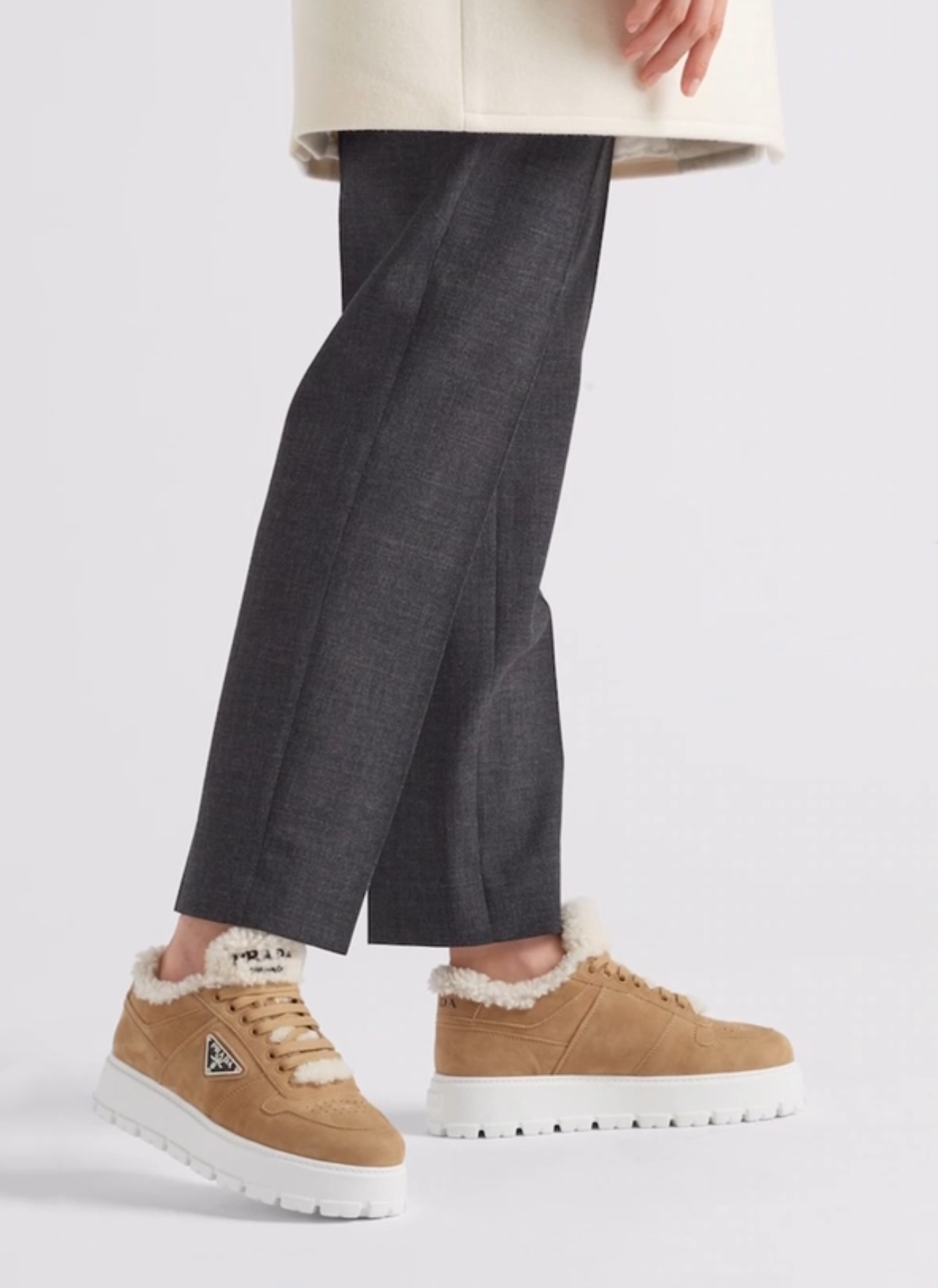 Эти спортивные кроссовки, выполненные из теплых и изысканных материалов, имеют современный дизайн, сочетающий в себе комфорт и функциональность. Верх из замши с подкладкой из овчины дополнен легкой резиновой подошвой с тисненым логотипом. Знаменитый треугольный логотип из эмалированного металла придает обуви особый шарм.