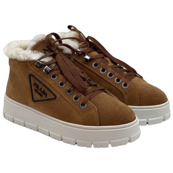 Эти спортивные кроссовки, выполненные из теплых и изысканных материалов, имеют современный дизайн, сочетающий в себе комфорт и функциональность. Верх из замши с подкладкой из овчины дополнен легкой резиновой подошвой с тисненым логотипом. Знаменитый треугольный логотип придает обуви особый шарм.